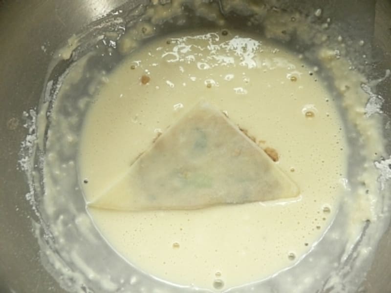 おからの煮物を作った日は、余った分をワンタンの皮で包み、小麦粉液とパン粉の衣をつけて冷凍しておくと便利です。具にはすでに火が通っている上に、平べったい形なので、少量の油ですぐに揚がります。,