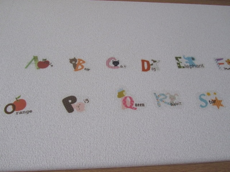 アルファベットのレターとその頭文字に使われている絵が一緒に描かれているので、絵と文字を連想しながらアルファベットを覚えられ、ちょっとした教材にもなりますね!