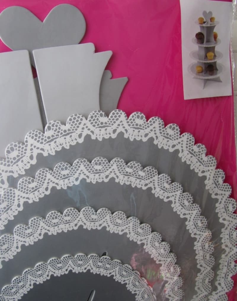 大人だけのホームパーティーなら、フリルの模様がきれいなガラスのケーキスタンドをおすすめしますが、子供のホームパーティーなら、組み立て式の「ペーパーケーキスタンド」がおすすめです。