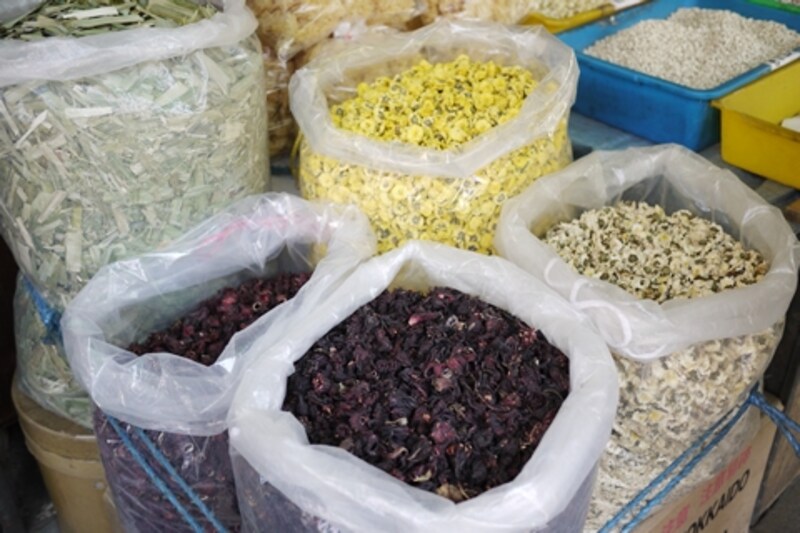 台北で最も古い問屋街、迪化街(てきかがい)。数百メートルにわたってメインストリートが続き、両脇にはバロック調のレトロな建物が立ち並んでいます。そこを埋め尽くすのは、漢方薬や乾物、ドライフルーツ、中国茶、加工品などの数々。一つ一つのお店をのぞいていたらあっという間に時間が過ぎるほどです。