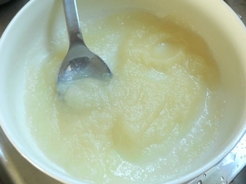 ソースは、洋梨をミキサーでつぶして電子レンジでチンして冷ましたものです。かける時に少し堅かったので、サイダーで伸ばしました。