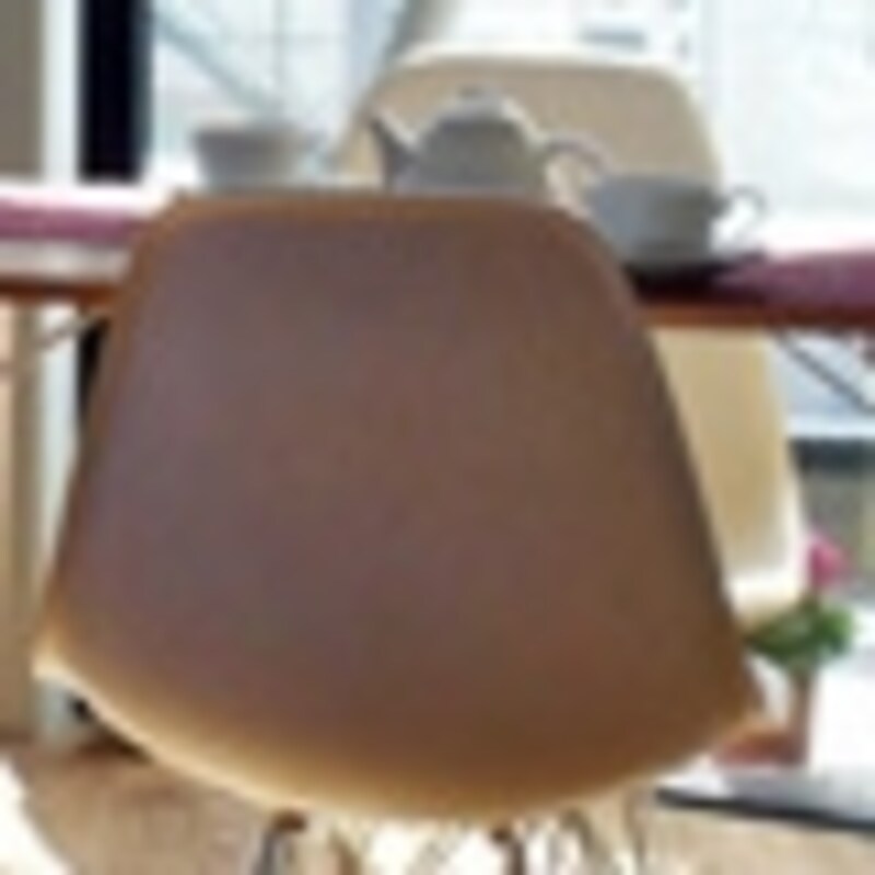 3階はこの家の中で最も明るい部屋です。約6帖のナラのフローリングのワンルームで、キッチンとダイニングになっています。窓際には陶芸が趣味の建て主のロクロが置かれます。 南側の間口いっぱいのガラス戸と、その先のテラスを通して視線が自然に戸外に向かうので、心理的に狭さを感じさせない空間になっています。
