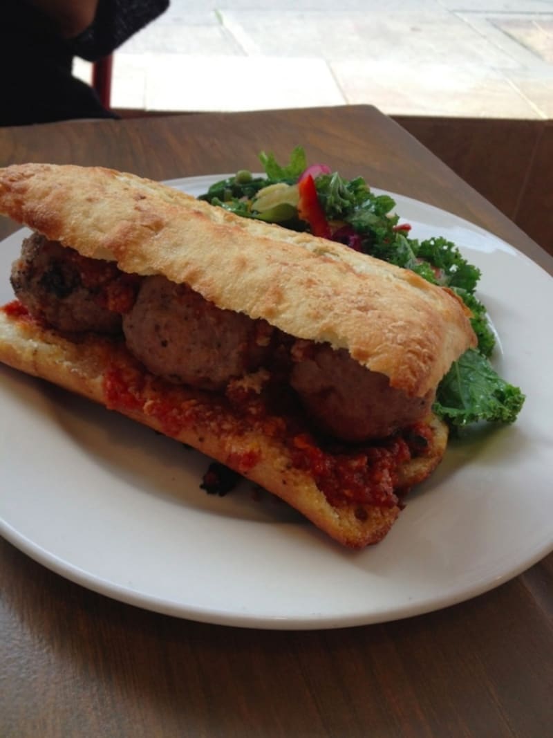 このお店のウリはなんといっても、トルコのミートボール「kofta (コフタ)」にインスパイアされて作ったというジューシーで濃厚なミートボール。メニューはミートボールをメインにした、パスタ、サンドウィッチなど。私は、ミートボールトマトパスタがお気に入りです。ニンニクが効いたミートボールは、ジューシーでボリュームもたっぷり。トマトソースがしっかり絡んだ太めのパスタともばっちり合います。サンドウィッチには大きなミートボール&トマトソース入り。サラダも付いているのでヘルシーです。