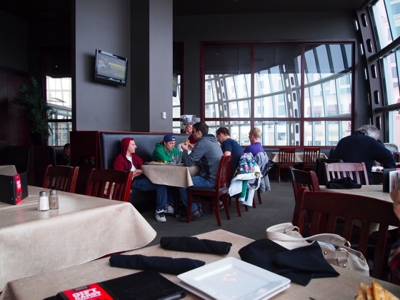 ナイアガラの滝は一年中観光客で賑わっていますが、滝の近くにはファストフード店がいくつかあるだけで、レストランがあまりないのが実情。ただ、同エリアは、ショッピングモールや高級ホテル、そしてカジノでも有名な場所。ナイアガラの滝から15分ほど歩くと、素敵なレストランがいくつもあります。そのうちの1つが「Shoeless Joe's Sports Grill」です。ここは、ナイアガラ・フォールズビュー・カジノ・リゾート内にあるスポーツグリルレストランで、レストラン内で、場所によっては席にテレビが設置されており、スポーツ観戦をしながら食事ができます。
