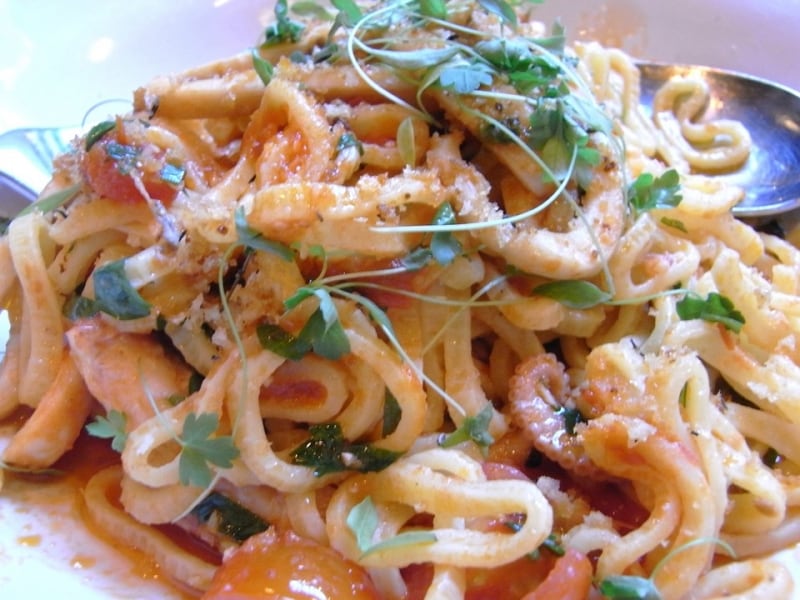 ジェイミーズ・イタリアンの特徴を短い言葉で表すなら、「手作り感と特別感」。パスタやティラミスなどお馴染みのイタリア料理が、ちょっと意外なスパイスの使い方や、繊細にも野性的にも見える盛り付けで、どれも「ジェイミー風」な仕上がりになっています。彼を知る人なら、そのレシピが間違いなく本人によって考案されたのだと確信させてくれるはず。