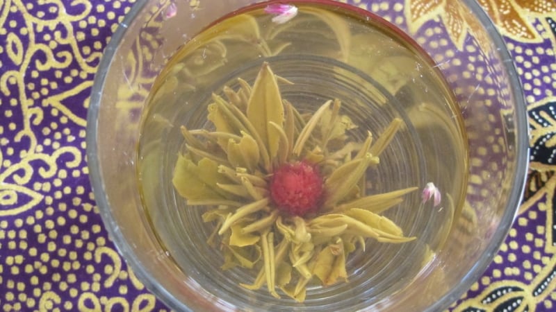 つぼみバージョン(写真)のロータスティーは、舌だけではなく、「目でも楽しめる」のがポイント。
