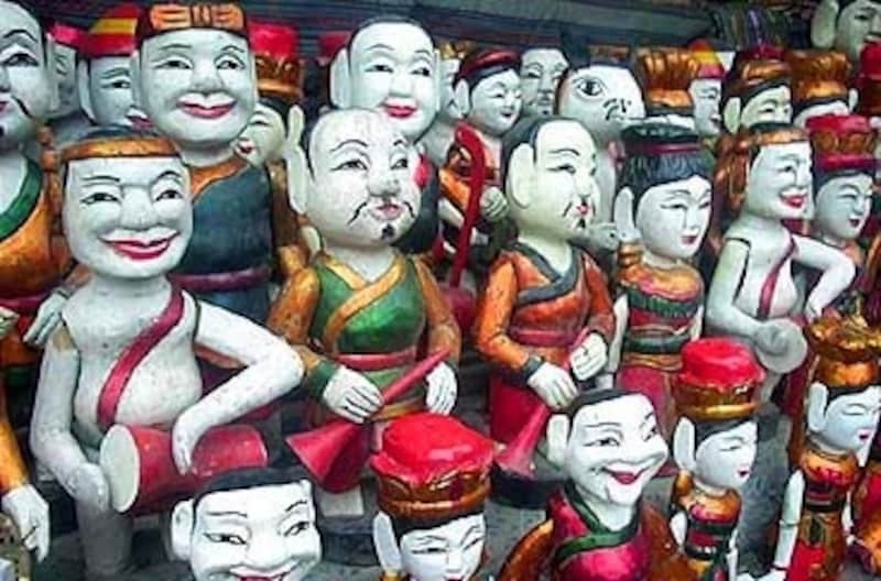 約1000年の歴史を持つベトナム北部の伝統的な人形劇で、水上で行われるのが特徴。農村の収穫祭の際に、水田や川で演じられたのがはじまりといわれています。水の上をピピピピッと飛び跳ねるように動く人形がとてもコミカルで面白く、ステージ横での民族衣装を着た演者による生演奏や歌も雰囲気を盛り上げます。