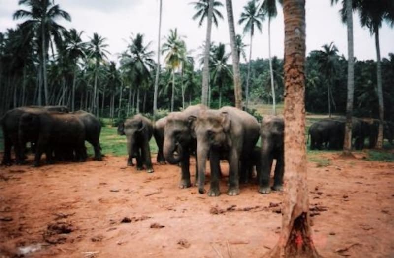 国際空港のあるコロンボから西に30kmくらい行ったところにあるKegallaという村にある「象の孤児院」。密猟などで親を失ったりした、小象たちが集められて育てられているという施設です。檻などはなく、小象たちは自由に暮らしていて、水浴びのためにぞろぞろと川へ移動していくところ、ミルクをもらうところ、遊んでいるところを自由に見ることができるのです。