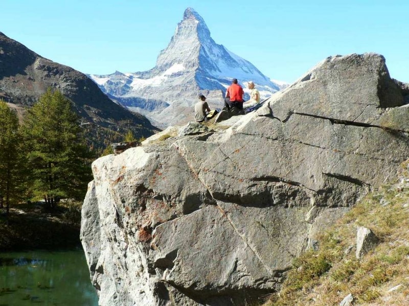 大勢の観光客で賑わうリッフェルゼーと比べ、ここはぐっと静か。湖面に映るマッターホルンの姿は、間違いなくここが一番です。湖の周りには、お土産屋さんなど人工的な建物は一切ありません。