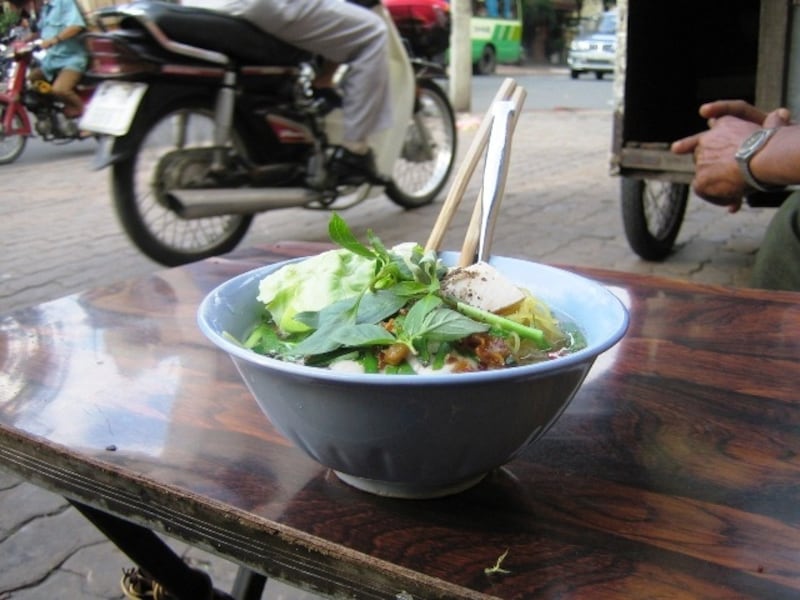 私が行ったのはホーチミンですが、大通りではない通りを歩いていると、路上どこにでも小レストランがあります。「ベトナム風屋台」ともいえるかもしれません。私が食べた場所は2か所あって、ひとつはサイゴン大聖堂から北西の方向に歩いて行った方向にある小路地で、もうひとつはベンタイン市場から東の方に歩いて行った比較的細い道でした。