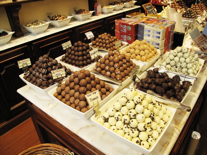 ガレー、ゴディバ、ジャン=フィリップ・ダルシー、レオニダス、ノイハウスなど、日本でも大人気ショコラトリーが勢ぞろいしているばかりか、2012年大丸東京店に国外初出店したクッキー&ベルギーワッフルの名店ダンドワの本店&サロン・ド・テがあるのもここ。