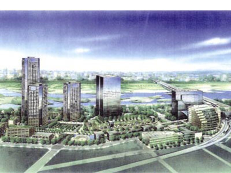 東急田園都市線二子玉川駅周辺では、東急電鉄などによる再開発プロジェクトが進められています。この「二子玉川東地区市街地再開発事業」は、駅周辺に商業施設やオフィスを集めるとともに、多摩川の緑を生かした住宅の供給を行おうという、複合型の街づくり計画です。計画区域は約11.2haと民間施行事業としては全国最大規模になり、2期に分けて行われます。第1期分は約8.1haで、地上43階、高さ約151mのタワーマンションをはじめ住宅、店舗、オフィス、駐車場など延べ面積約26万4400m2が開発される予定です。