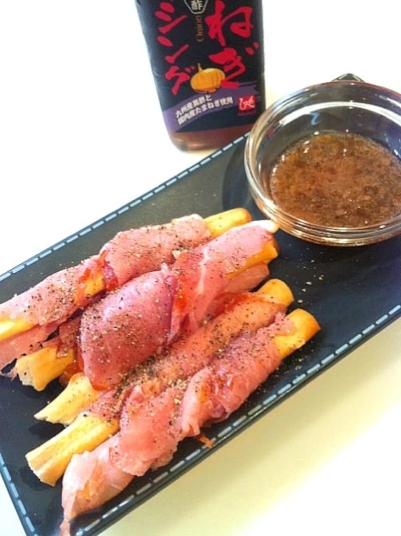生ハム、グリッシーニ、玉ねぎドレッシングで美味しい一品が