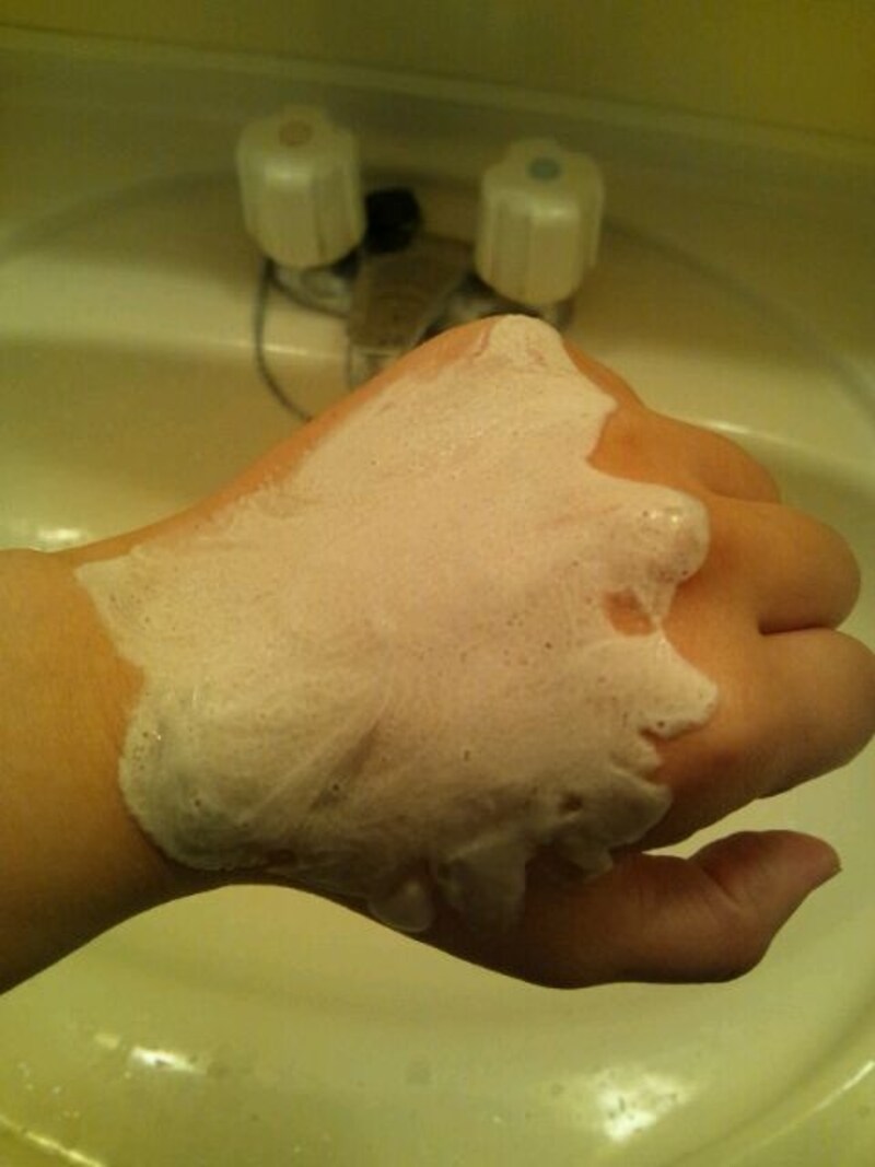肌に乗せて伸ばしていくとあら不思議! しゅわしゅわの泡になる!
