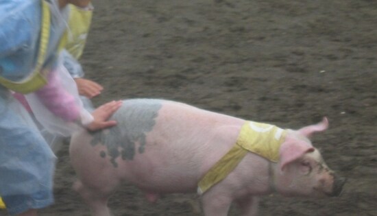 マザー牧場で乳搾り・バター作り・こぶたのレース体験