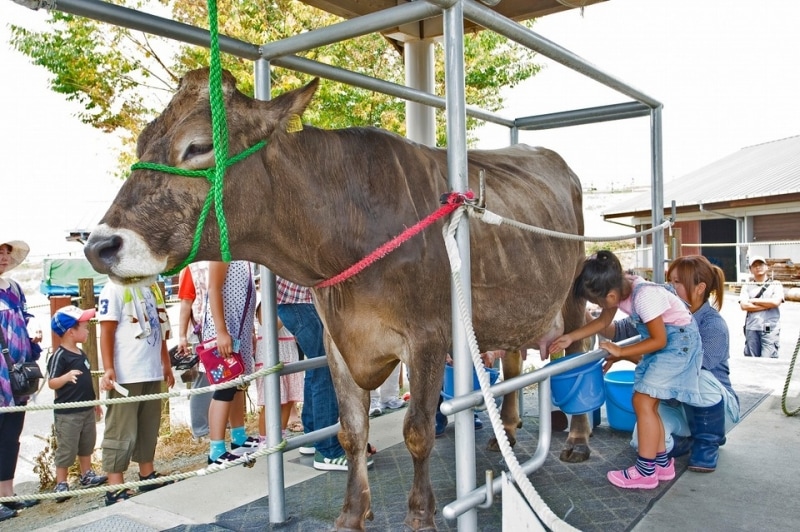 阿蘇ミルク牧場では、酪農に関する様々な体験をすることができます。「まきばの学習体験」でスタッフの方に牧場内の乳牛たちの紹介をしてもらったり、乳牛や酪農のお仕事のお話、しぼられたミルクからどのような乳製品が作られているのかなどのお話をうかがうことができ、更には実際に、お母さん牛の乳しぼり体験までできます。阿蘇ミルク牧場では、4歳のお子さんから牛の乳しぼり体験ができるそうですよ。また、手づくり体験館では、しぼられたミルクなどから作ることができるいろいろな食べ物を作成する体験をすることができます。その季節や月などによってメニューは様々ですが、例えば、ジューシーウインナーづくり、牧場のパンづくり、バターづくり、不思議なチーズづくりなどを体験することができます。