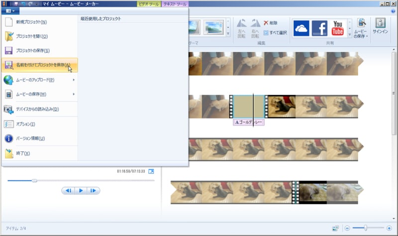 なお編集後プロジェクトを保存しておけば、次回そこから作業の続きができ便利です。