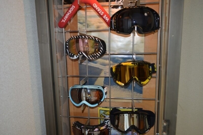 スノーボード用のゴーグルをきれいに並べてディスプレイ収納