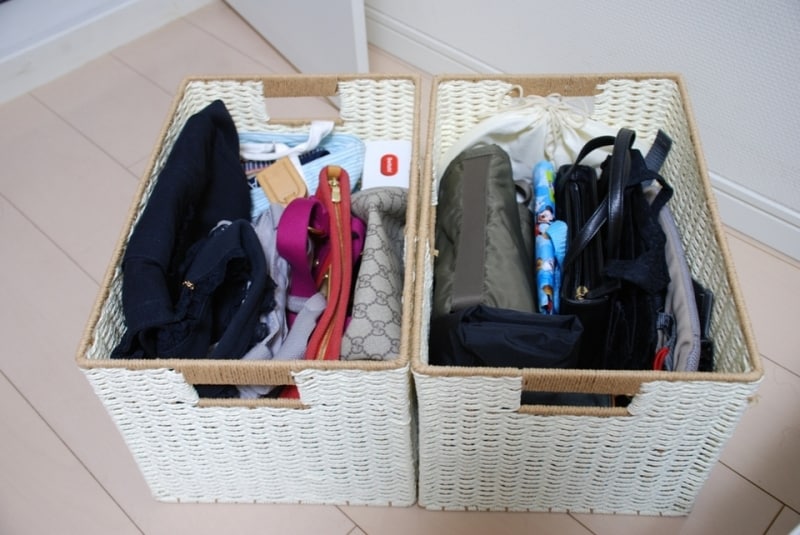 私は大小2セットにバッグ類を収納しています。下側の大には大きめのハンドバッグや折りたためるボストンバッグなどを入れ、上側の小にはエコバッグやサブバッグ、ポーチなどを入れています。