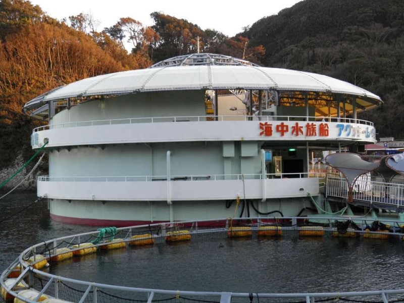 下田海中水族館は、伊豆半島に位置する静岡県下田市の天然の入り江を利用し、海上に浮かぶ浮遊円形水族館です。入り江には、数多くのバンドウイルカが飼育されています。この水族館の最大の人気はイルカのパフォーマンスです。入り江とスタジアム内の2カ所で行われ、来館者がビーチに入り、エサをあげたり、イルカに触れたり、一緒に泳げるプログラムなど、バラエティー豊富な内容を取り揃えています。