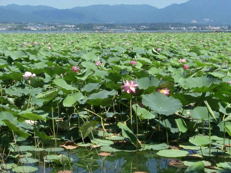 前日の登山の疲れが残っているので、この日の移動はレンタサイクルに。草津駅東口の階段下にある「駅リンくん」は1日300円と格安です。国内最大級といわれる烏丸半島の花ハス群生地など眺めてのんびり過ごしました。