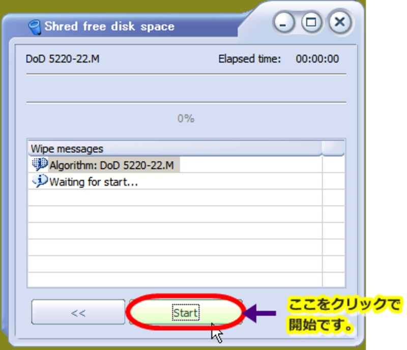 - 起動し、左段の「shred Free Disk Space」をクリック