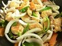イチゴジャムソースをからめる酢豚風炒め物
