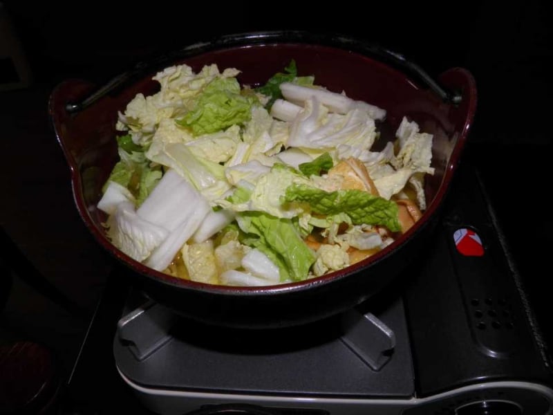 具材がたっぷり入った鉄鍋が登場し、自分で「ほうとう」を作ります。「ほうとう」を食べるだけでなく、作る楽しさがセットされているわけです。勿論、しっかりと味付けされ、温めるだけなので失敗することはありません。自分の手づくりの「ほうとう」が味わえます。