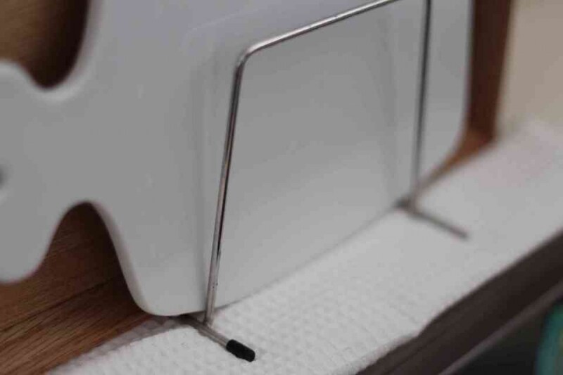 木のものもスポンジでさっと洗って、ここに立てかけて干しておくと次使うまでには乾いています。いつも出ているのですぐに使えるのも便利で、個人的に気に入っています。