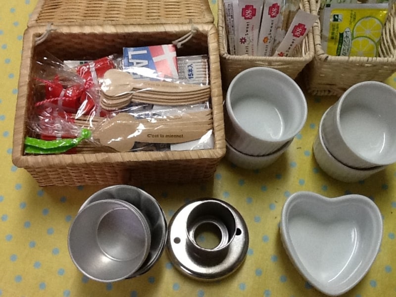 私はお菓子を作るのが大好きなので、この引き出しにはピックやゼリー用やプリン用のカップ・イケアで購入して色とりどりのプラスティックのお皿や入れ物などを入れております。子供のお友達が来た時、この引き出しをあけると、簡単に可愛く盛りつけが出来るようにしております。