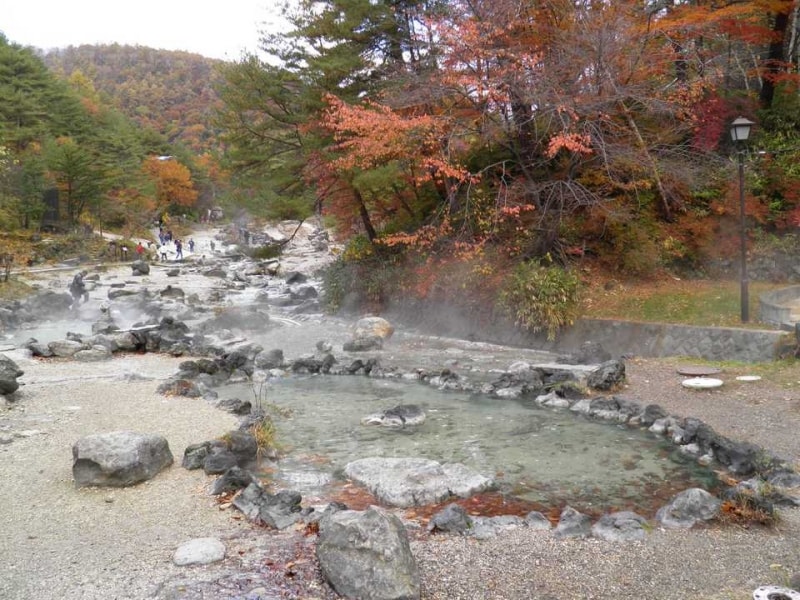 温泉街の中心部には湯畑が広がり、温泉の湯が滝のように豪快に湧き出る光景は全国的にも珍しいものと言えます。湯畑から温泉街を歩くと、西の河原が広がります。西の河原公園の敷地内には、遊歩道が整備されて地面のいたるところから湧き出る温泉に手を触れながら、のんびりと散歩をすることができます。