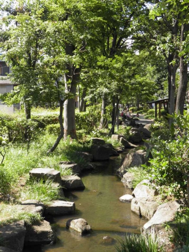 水の中には小さな魚が数多く泳ぎ、ザリガニが石に隠れています。水面にはアメンボがすいすいと気持ちよさそうに滑りまわっています。水遊びは子どもの特権なのではなく、子どもに混じって大人も水しぶきをあげているところをよく見かけます。