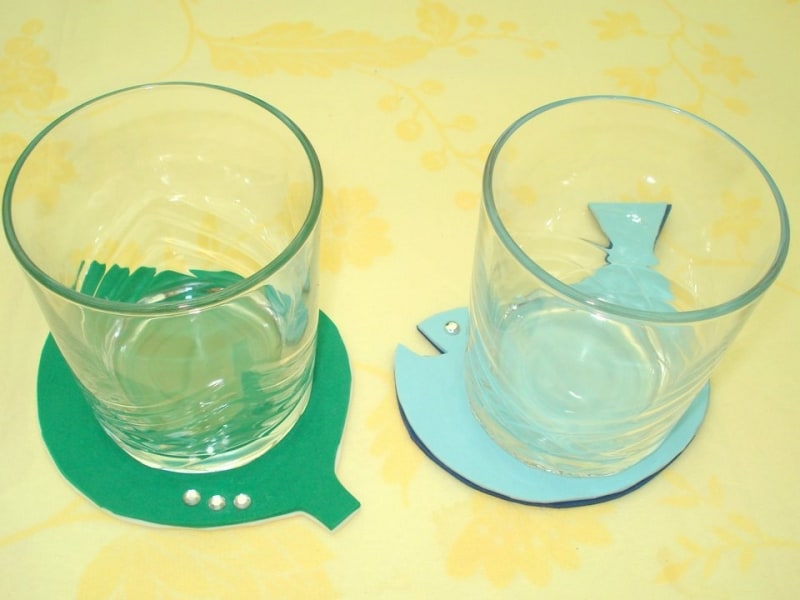 目にジュエリーシールを1個貼ります。 - 葉っぱは、緑と白のシートを二枚重ねてボンドで貼り合わせ、