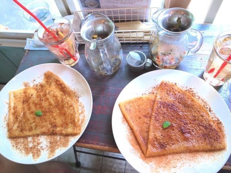 おすすめはハーブティーとシュガー&バターのクレープ。