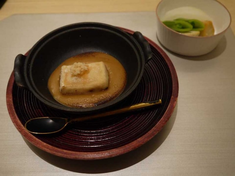 又、こちらおすすめの、焼きごま豆腐は職人技の腕が輝きます。