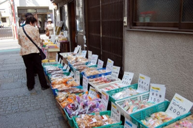 また、ちょっと路地に入ると、昔なつかしい駄菓子屋さんの並ぶ「菓子屋横丁」があります。