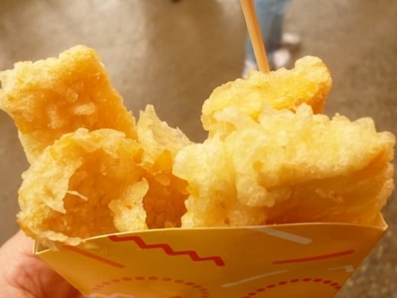 - 濃い目に天ぷら衣を作り、塩と砂糖でほんのり味をつける。