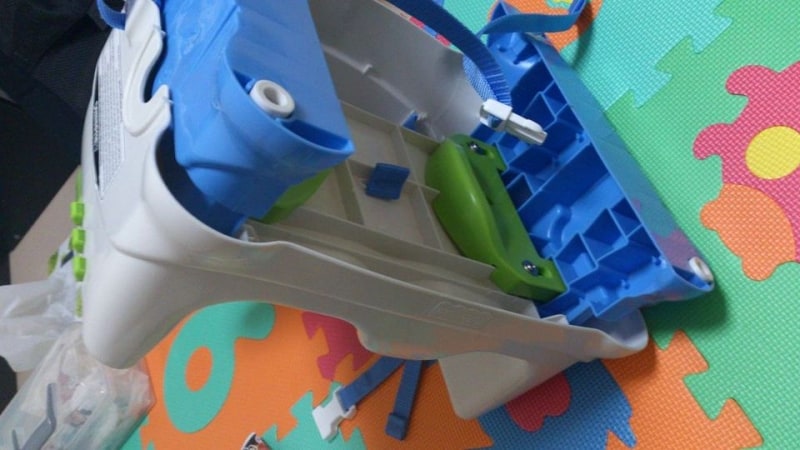 テーブルを設置しますが、シートベルトで赤ちゃんを固定できるので2重に安心