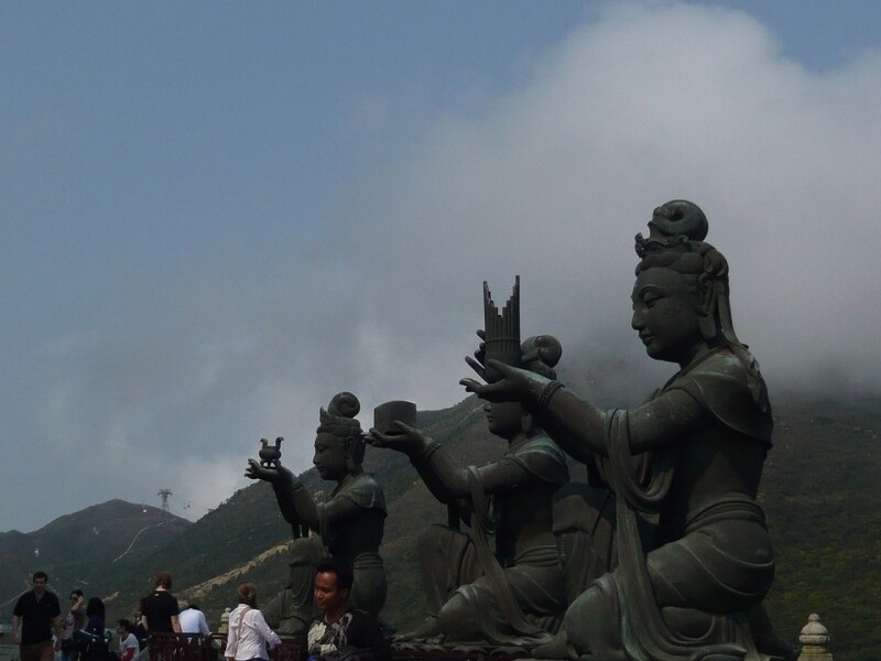 そのビレッジをぬけると、長い急な階段があり、それを上っていくとポーリン寺に着く。そこには大きな大仏様が座っており、世界最大級のブロンズ製屋外座仏として有名だ。あまりに大きいし、屋外にいらっしゃるので、もうかなり遠くから拝見することができるのだが、間近の真下に行くと、この迫力がまたすごい。