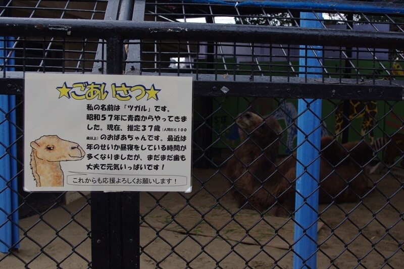 特筆すべきは、フタコブラクダのツガルさん。なんと、日本一長生きしているラクダだそうで、30歳を超えているんだそうです。長寿を願った千羽鶴がファンから贈られるなど、園の人気者です。