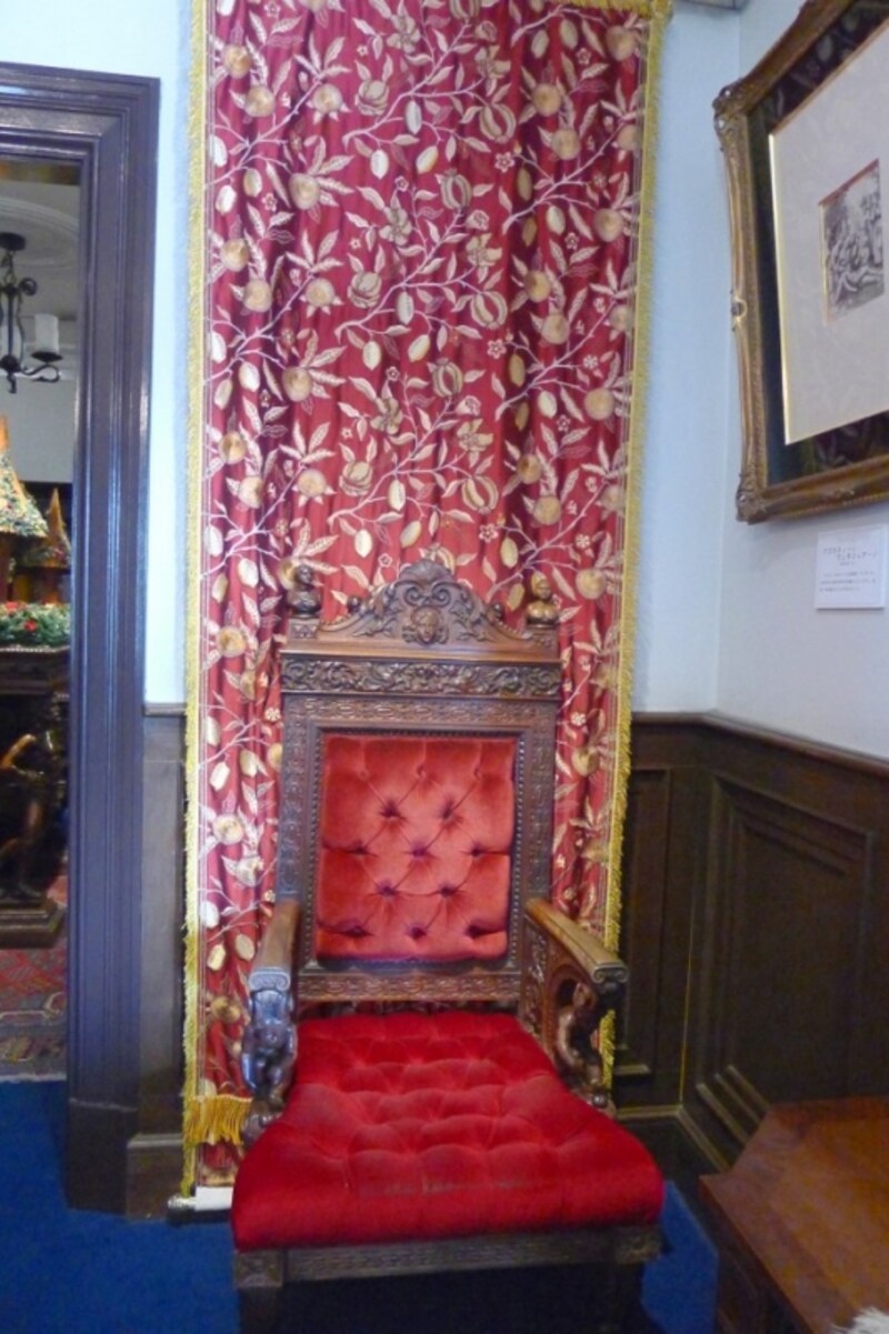 うろこの家から細い道を通ってすぐにある山手八番館。ステンドグラスの美しい館の中にある二脚のイス、「サターンの椅子」は、座ると願いが叶うと言われています!男女で座る椅子が違っており、向かって右が女性、左が男性です。