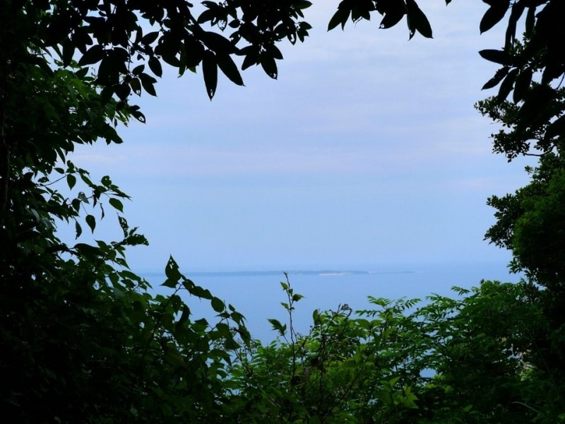 三庫理の奥にある久高遙拝所(クダカヨウハイジョ)の木々の間からは神々の島・久高島を臨めます。(写真2枚目)
