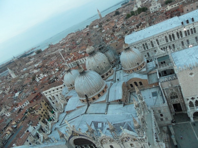 上から見るサンマルコ寺院のクーポラはなんとも不思議な光景なのですが、広場から見上げるのとはまた違って面白いものです。ヴェネツィアが東西貿易の要所であったということが思い起こされます。