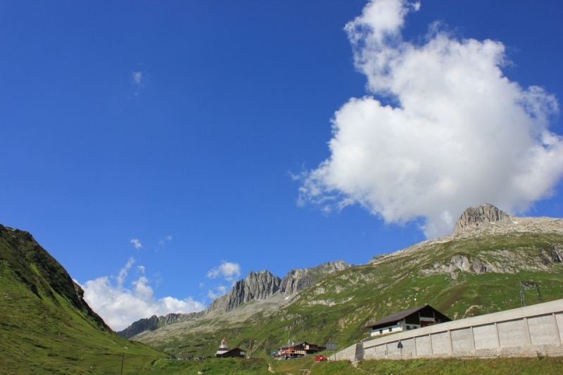 グラウビュンデン州とウーリ州の境になっているこの峠は、標高2046メートルにあります。州境というだけではなく、言語も変わるのがここ。グラウビュンデン州の側にあるレストランではロマンシュ語、そして道を挟んだウーリ州のレストランではドイツ語…など、日本では体験できない不思議な感覚があります。