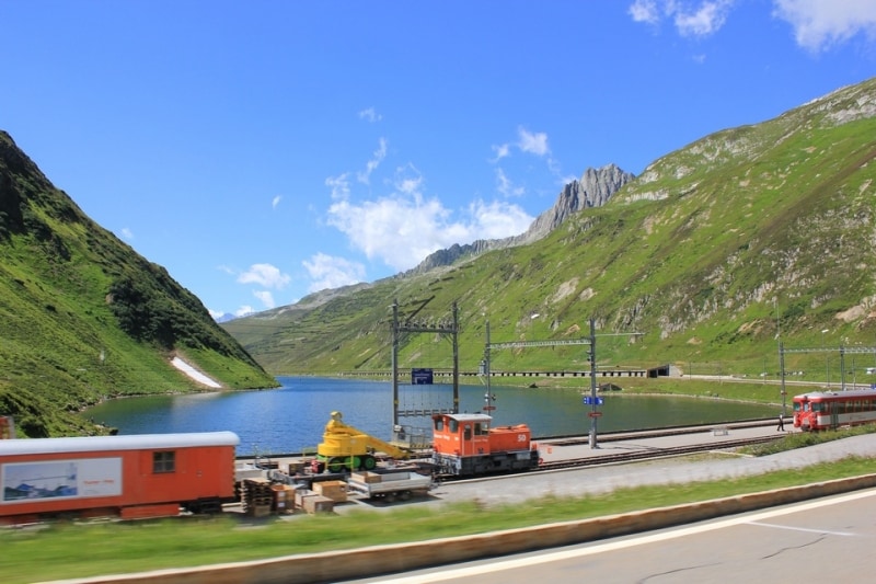 スイスの有名な鉄道、氷河特急もこちらを通っていくので、やはりその景色はお墨付き。夏には美しいグリーンをたたえ、冬は一面の銀世界で旅ゆく人を迎えてくれます(※冬季は自動車通行禁止。電車のみで通過が可能)。