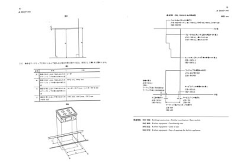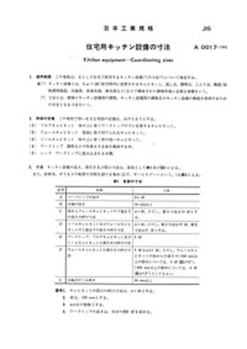 JIS A0017-1992 住宅用キッチン設備の寸法 sizes