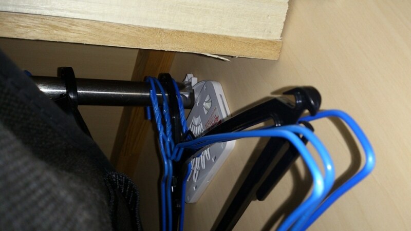 固定する前に仮止めして、ハンガーに服をかける際に邪魔にならないかを確認する。