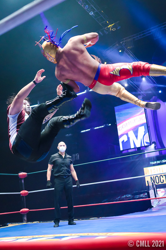 アレナメヒコで闘うイホ・デル・ペロ・アグアヨ(右)と ネグロカサス(左) (C)Rosalio Vera