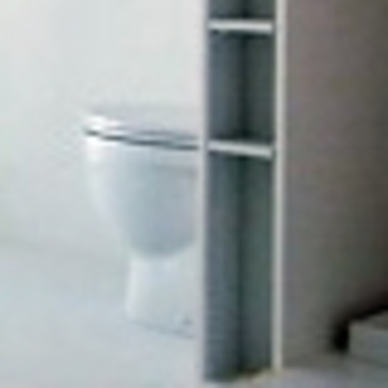 | 1. バスルームの北側には半円形のテラスが続いている。トイレを使うときはカーテンで仕切る。 2. バスタブの背後は洗面室。バスルームの床面とは8cmほどの段差がある。背後の壁と天井との空きは80cm。 |