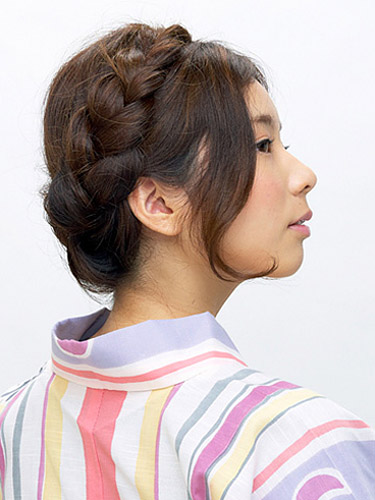 三つ編みは崩れやすいので、できるだけ上のほうからしっかりと編みましょう。髪質がストレートの場合、軽く巻いておくとより安定感のある仕上がりになります。顔周りの毛束は軽く頬にかかるように、バランスを見ながら配置しましょう。